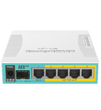 Modelo: hEX S (2025) 5 puertos Gigabit Ethernet con soporte de bonding Puerto SFP 2.5G para máxima velocidad de fibra CPU Dual-Core ARM 950 MHz con 512 MB RAM Alimentación flexible (12–57 V) con PoE-in y PoE-out RouterOS v7 con enrutamiento avanzado y VLANs Ficha Técnica: hEXS_250535